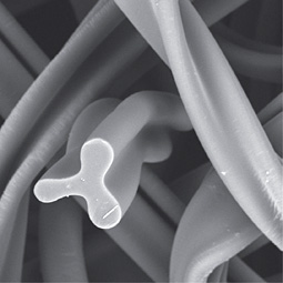 Medii de filtrare din Polimidă (P84) Pâslele din polimidă fetruite cu acul sunt medii de filtrare excelente la temperaturi înalte din punct de vedere al performanţei, depăşind în general celelalte medii standard, cu excepţia PTFE. Acestea se comportă în general bine la temperaturi de aproximativ 240°re;C dacă şi condiţiile chimice sunt propice, hidroliza reprezentând o potenţială problemă la temperaturi ridicate în cazul în care gradul de umiditate este ridicat. Ca şi multe alte fibre, polimidele pot fi amestecate cu fibre conductoare sau fabricate pe o pânză conductoare de tip reţea pentru a reduce posibilitatea de încărcare electrostatică. Dat fiind mediul final în care vor fi folosite, fibrele conductoare preferate sunt cele din oţel deşi ar putea fi folosite şi alte fibre în cazul folosirii la temperaturi scăzute. Interesant este faptul că aceste fibre au o secţiune transversală complexă ceea ce face ca eficienţa colectării să fie mult mai mare decât în cazul fibrelor circulare: